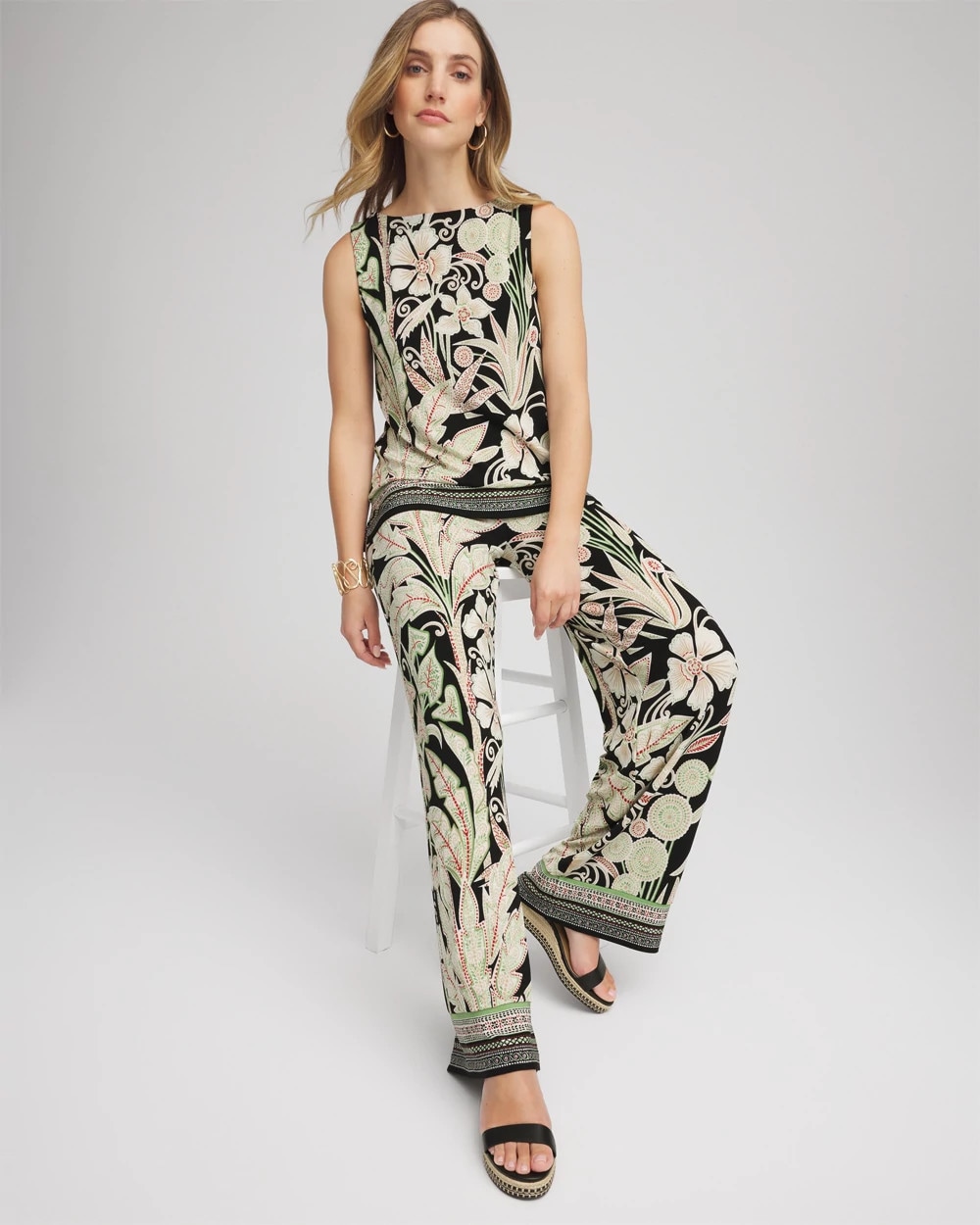 Crafted of Chico’s exclusive Naia fabric, these Palazzo pants from Travelers™ are decorated in a dark forest island-inspired motif. A wide silhouette completes this garment. Naia fabric by nature is breathable, perfectly packable, and sustainable. Clean-lined and wrinkle-free—these pants keep up with you—remaining flawless wherever you wear them.