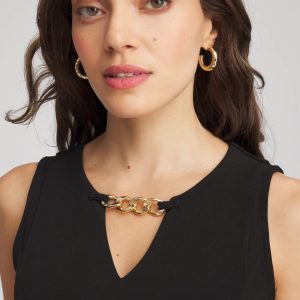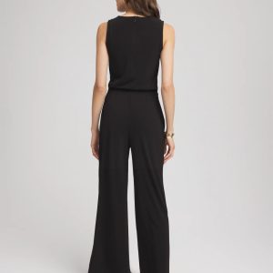 Crafted for a fluid wide-leg silhouette, this Travelers™ jersey knit jumpsuit is an elevated wardrobe essential.Bias cut from lightweight stretch-knit fabric for a beautiful drape that offers ease of movement and hugs the body’s curves in a way that creates a slinky and flattering silhouette. Smoothing, shaping back darts. Featuring classic pant and dress elements including smoothing back darts, concealed back zipper, hook and eye closure, andgoldtone link-chain embellishment at the neckline for a luxurious finish.