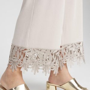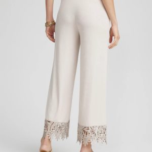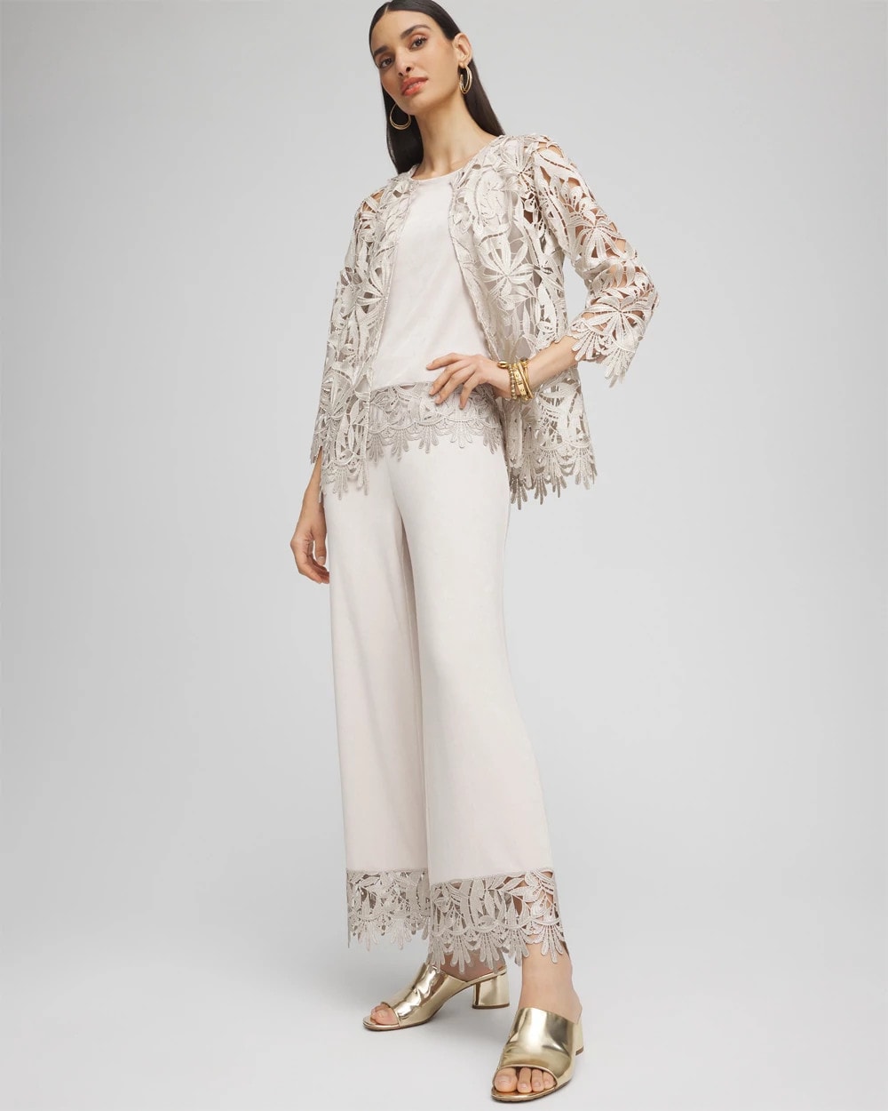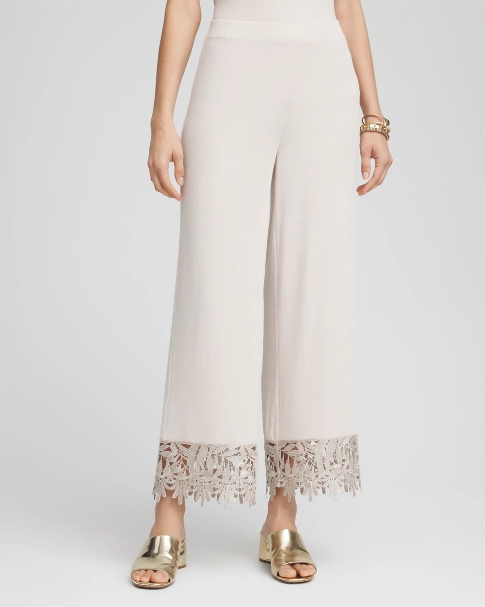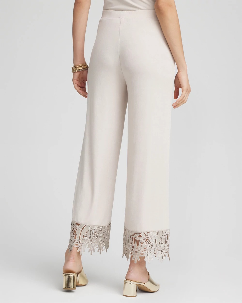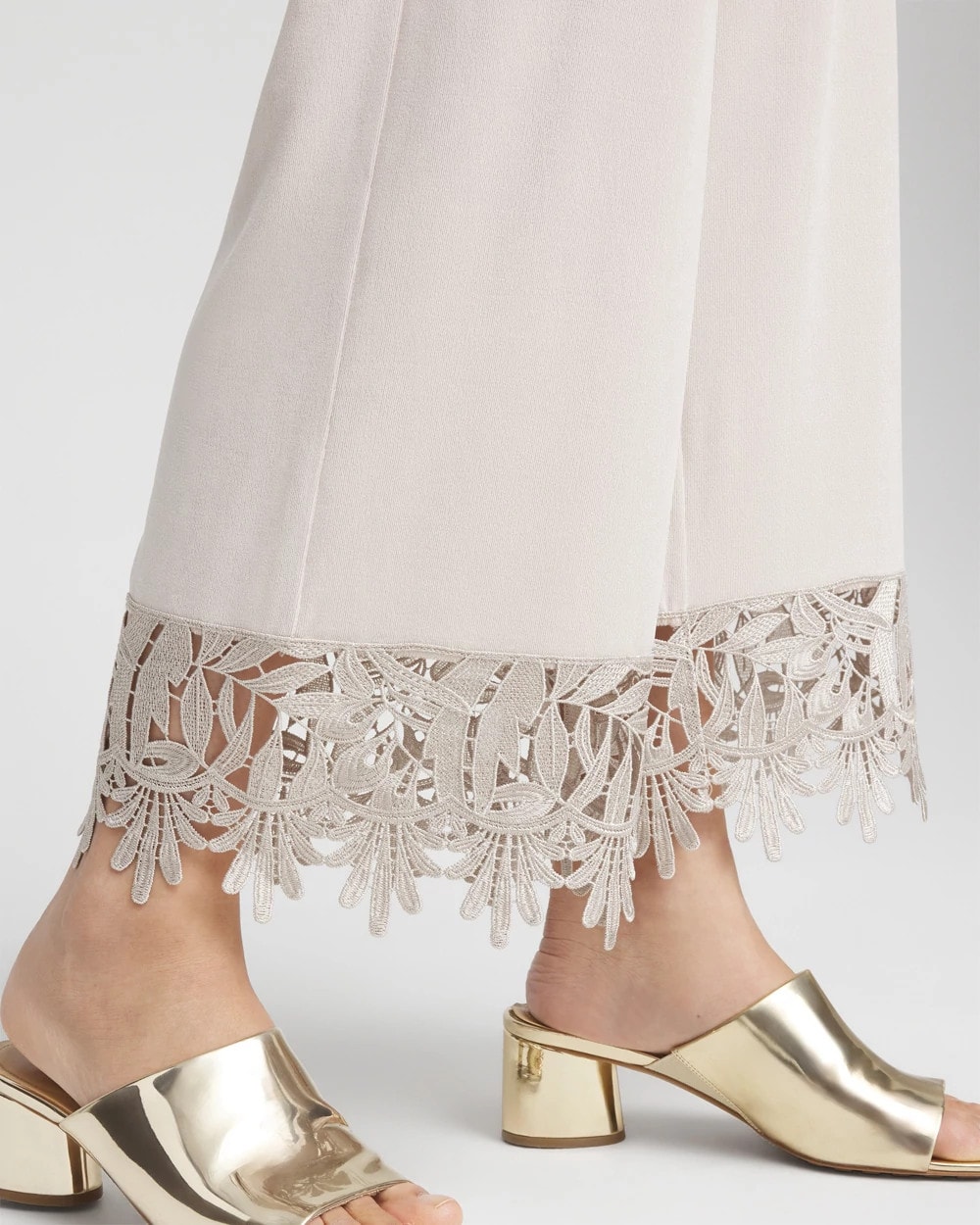 Our Petite Travelers™ Lace Trim Cropped Pants feature our wrinkle-resistant sustainable fabric. Designed in an elongating wide-leg silhouette with fashionable lace trim at the hems. They’re clean-lined, never wrinkle, and look flawless wherever you wear them. Complete the set when you pair them with our Travelers™ Collection Lace Jacket and Travelers™ Lace Trim Top.