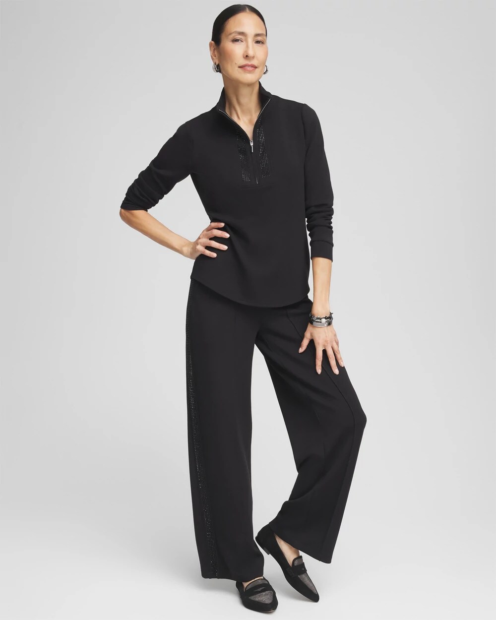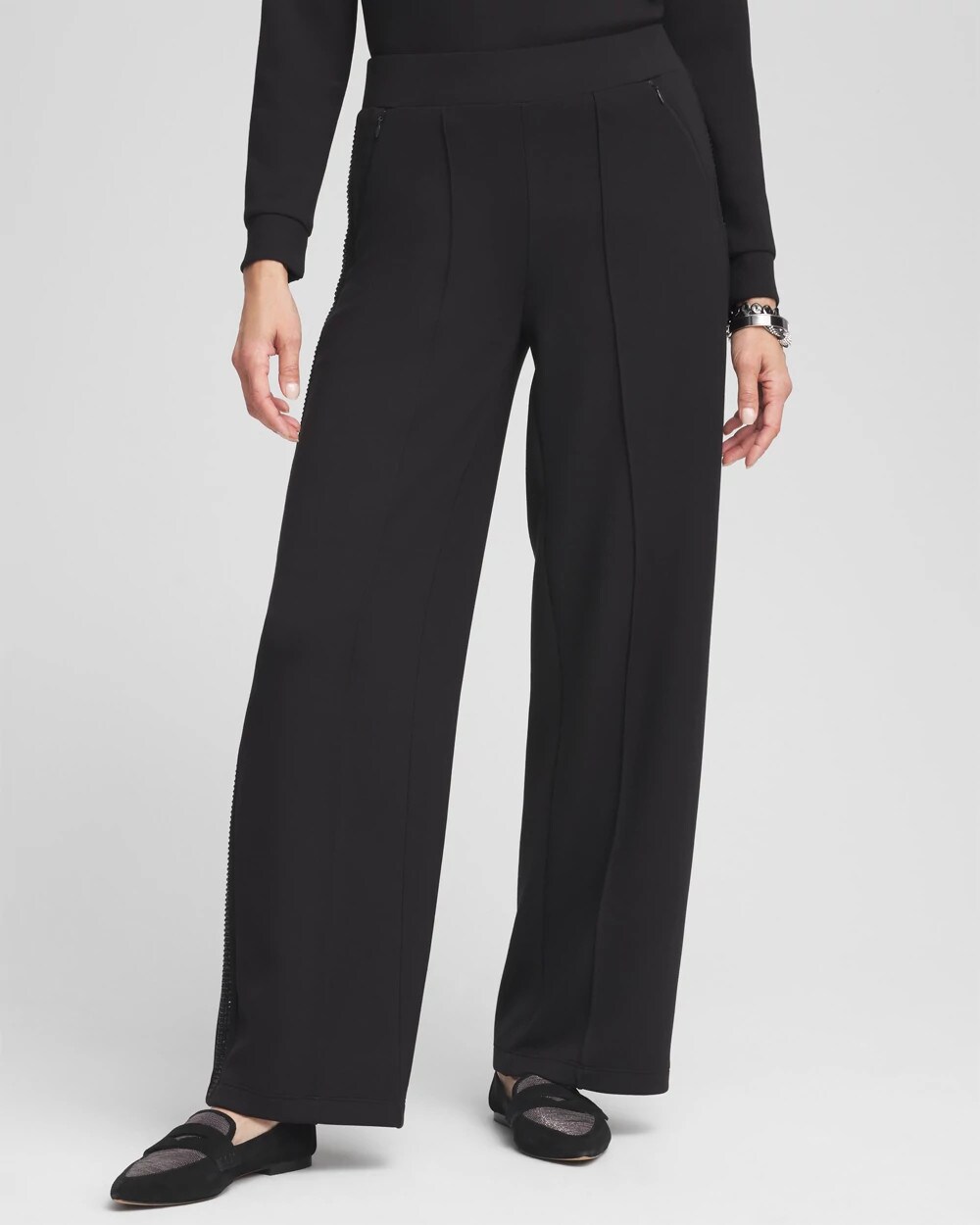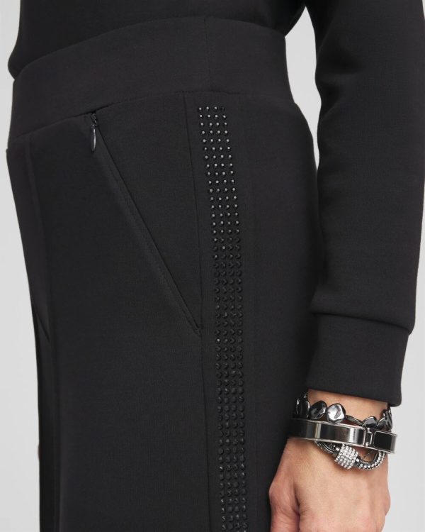 It’s all about the elegant and dazzling details. Zenergy® Scuba Embellished Pants. Adorned in sparkling rhinestones along the side seam, these pants feature a front pintuck to enhance the fit and angled zipper pockets for convenience. Made to match the Zenergy® Scuba Embellished Sweatshirt and our Zenergy® Luxe Ribbed-Knit Puffer Vest.