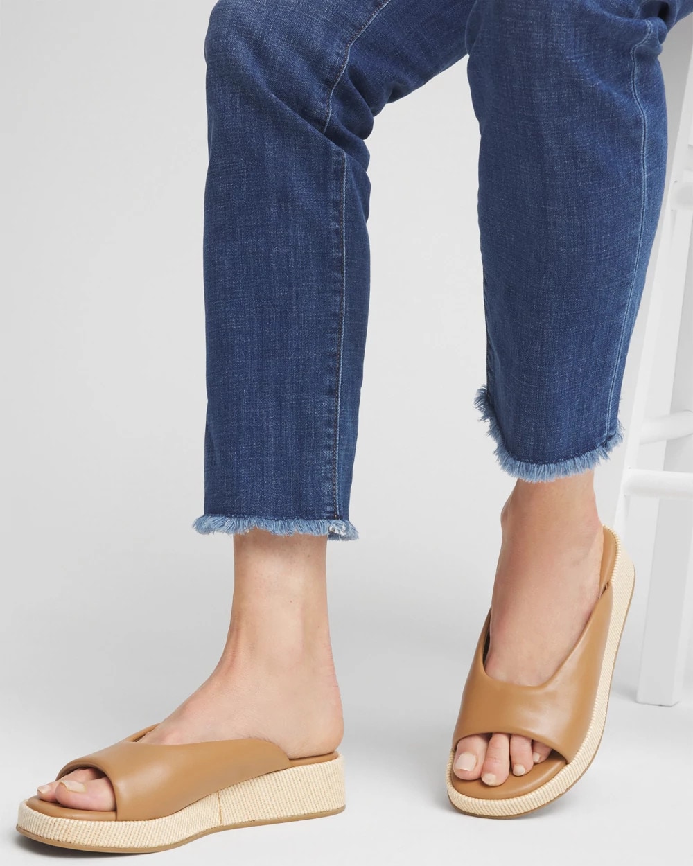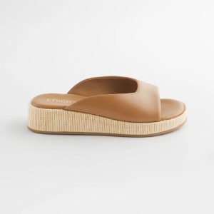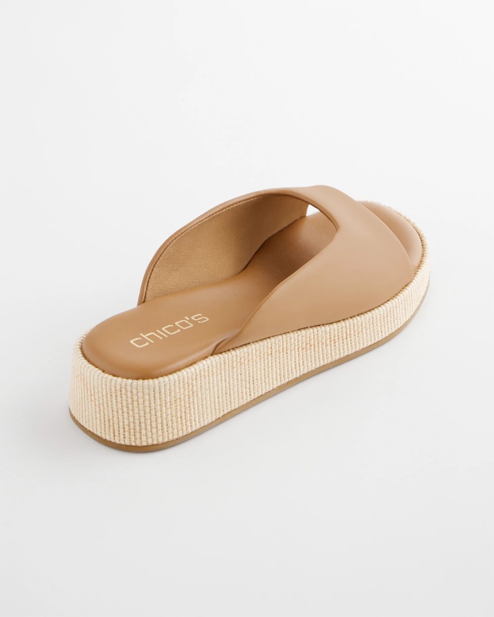- 1.4″ flatform wedge covered in metallic rope raffia