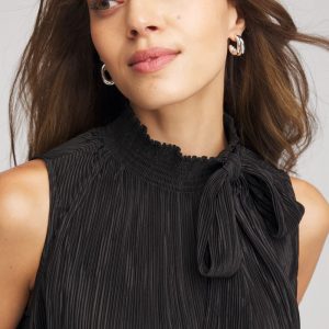 The epitome of elegant style—this Pleated Smocked Tie-Neck Top is the perfect outfit maker for your seasonal parties.