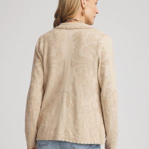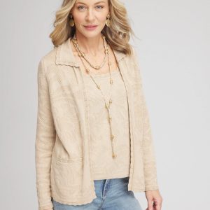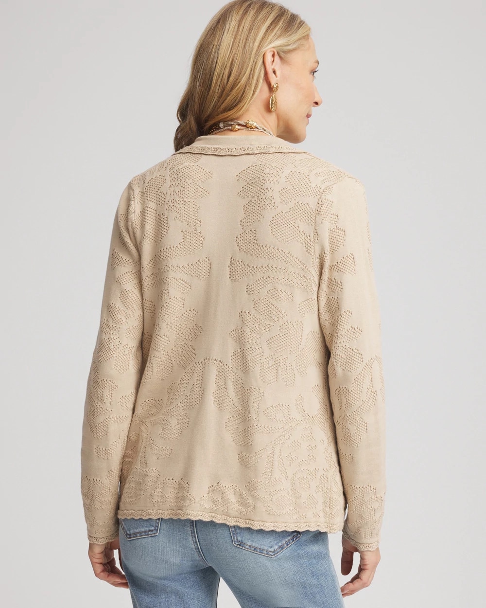 Add this new must-have tank-cardi matching set to your 2025 wardrobe— introducing Chico’s new Pointelle Lace Scallop Cardigan. Featuring a perfect balance between modern design —perforated leafy design and scalloped trim collar — and elegant style.
