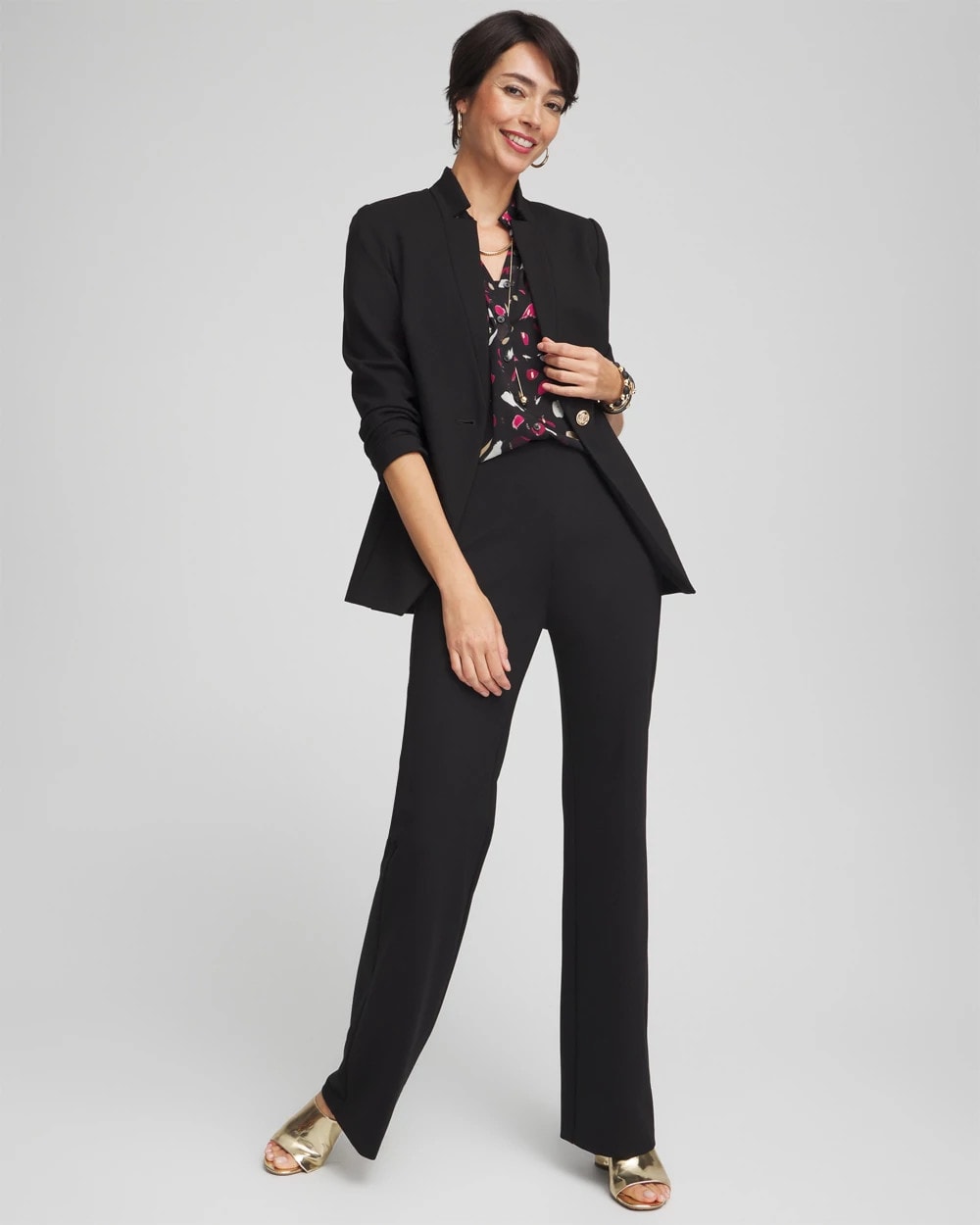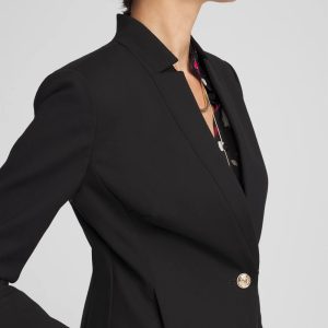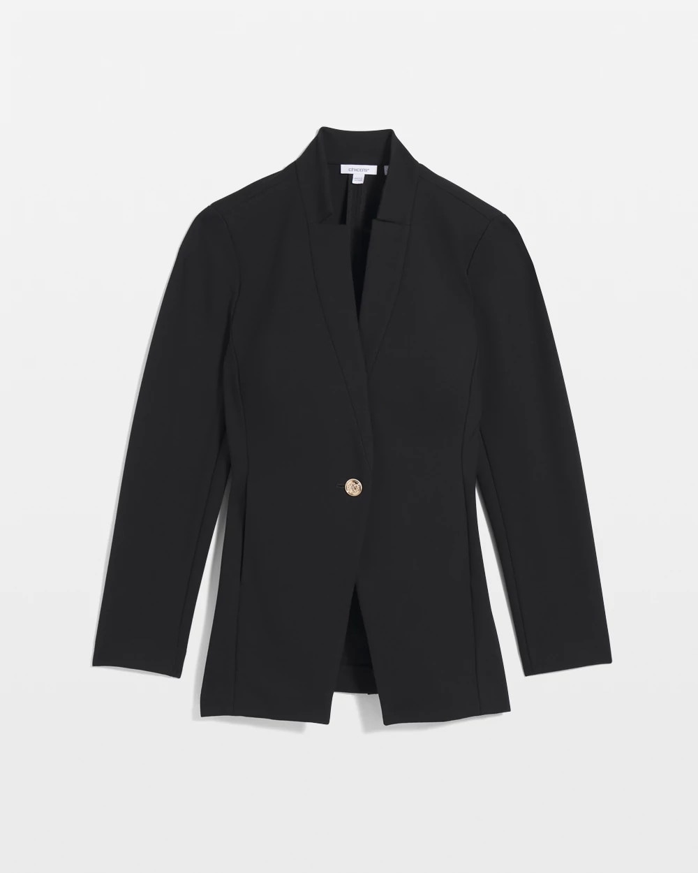 One of our classic and best-loved jackets is the Ponte Blazer. This design features peak lapels and button details, making it perfect for work or to dress up denim. The perfect fall topper for every day.