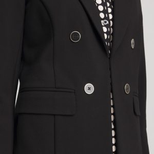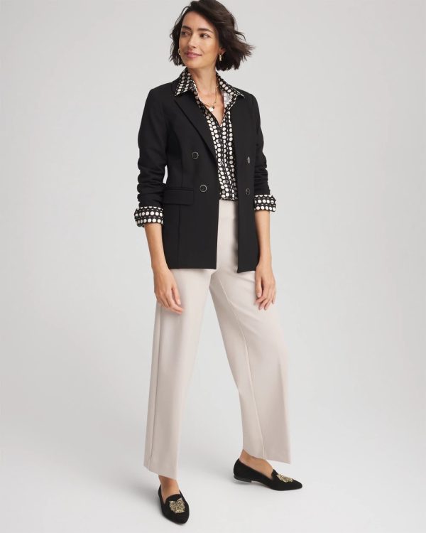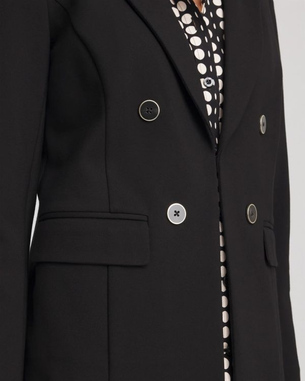 Rendered in the season’s sleek, smooth, and beloved Ponte, this Ponte Double-Breasted Knit Blazer features monochromatic buttons with a silvertone rim on the front placket, front closure with notch lapels, lined sleeves, and most-loved welt flap pockets.