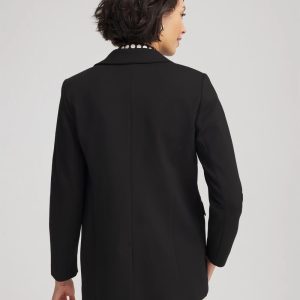 Rendered in the season’s sleek, smooth, and beloved Ponte, this Ponte Double-Breasted Knit Blazer features monochromatic buttons with a silvertone rim on the front placket, front closure with notch lapels, lined sleeves, and most-loved welt flap pockets.