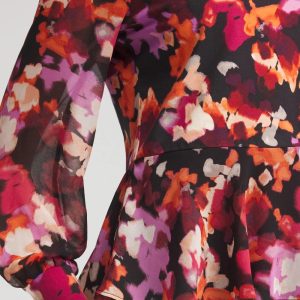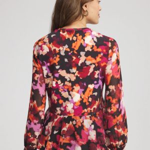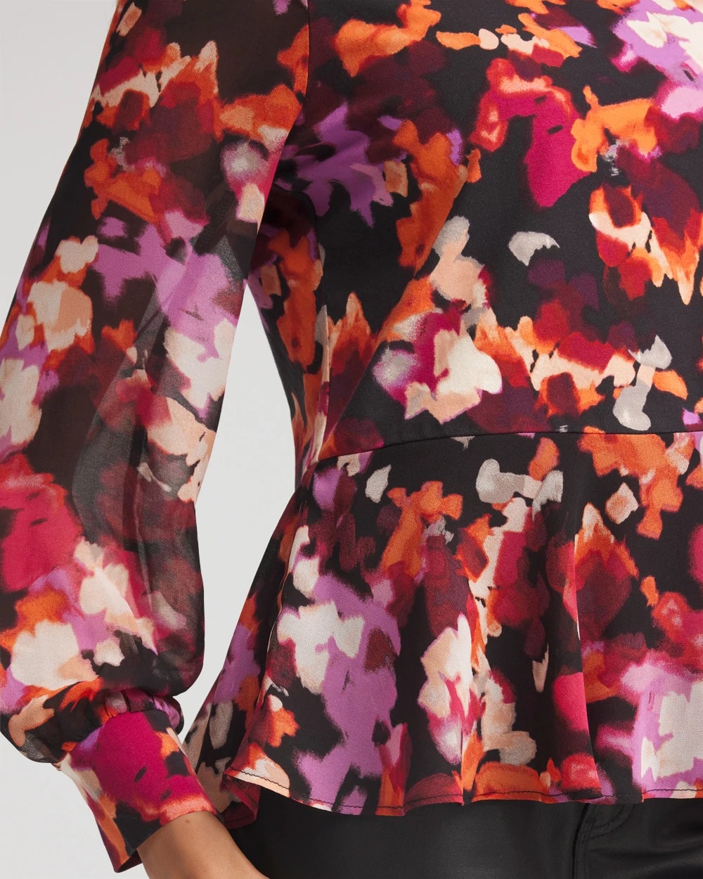 Embody your feminine side in thisPrinted Chiffon Peplum Top. An ultra flattering lined peplum waist unified with georgette sleeves and a jersey knit body to create the perfect top.