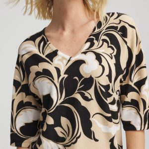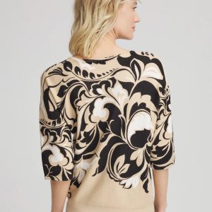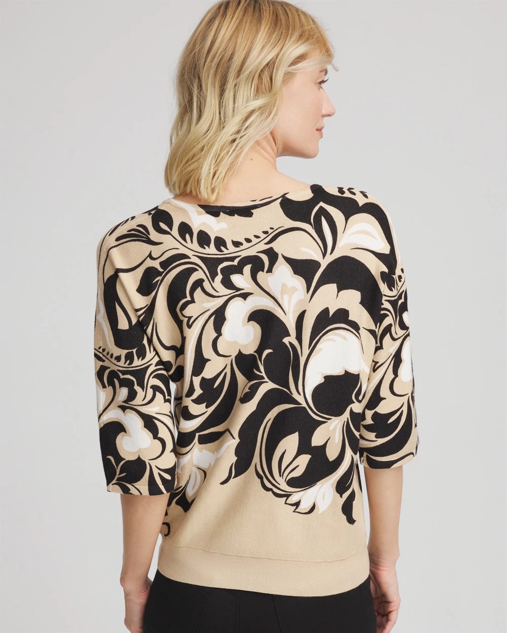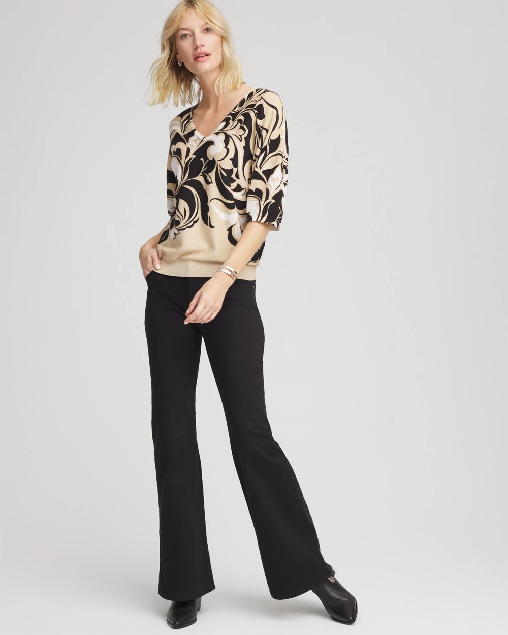 Rendered in a soft rayon-nylon blend, this v-neck sweater features a tapered hem, filigree print, and relaxed dolman sleeve. Pair with our new Emme pants, Brigitte™ or Juliet pants—for a more casual style wear with jeans by Chico’s.