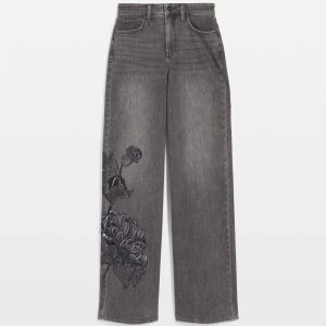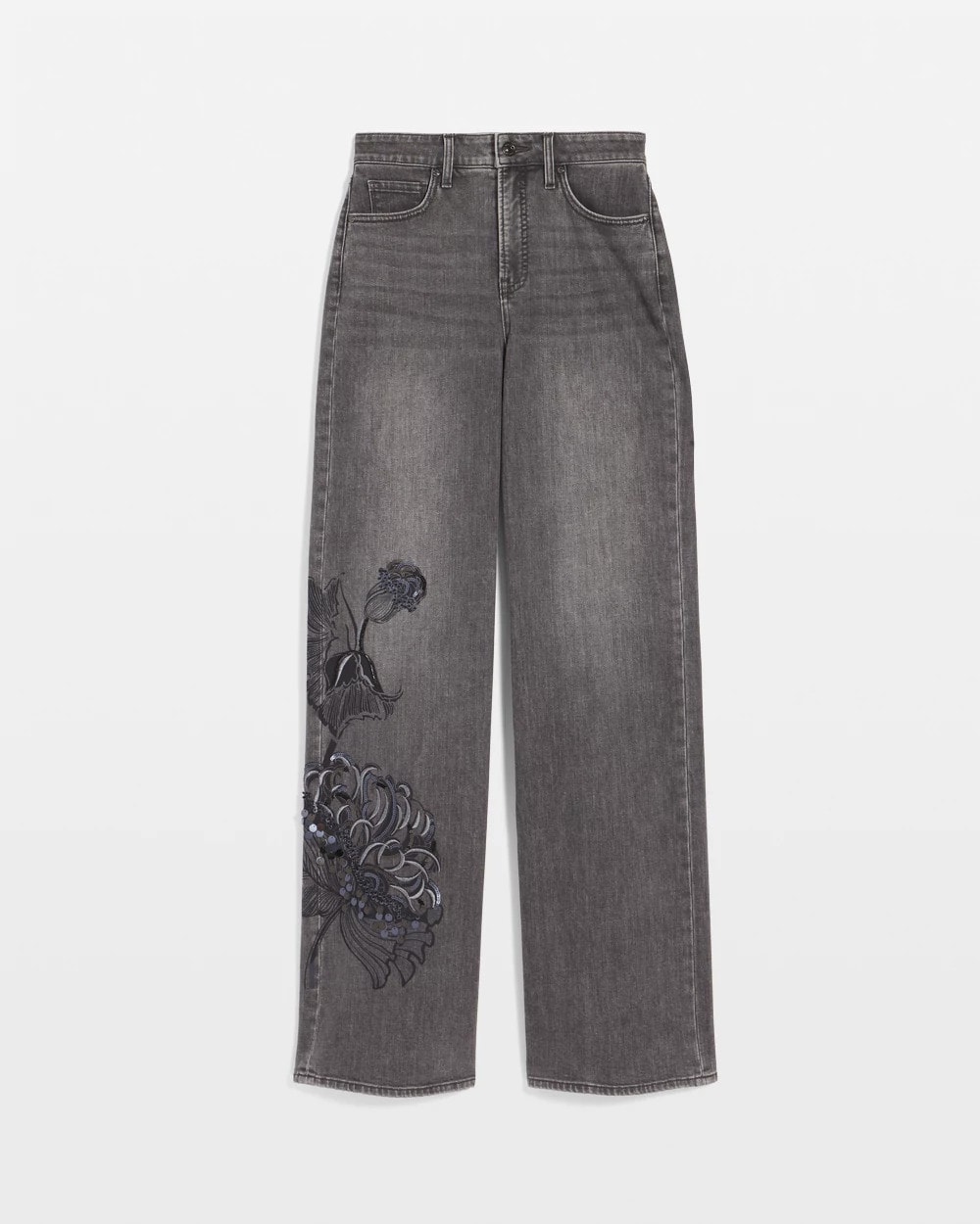 Made with a gray wash denim showcasing vintage character—washed for a white hue and treated with grinding appeal. These high-rise jeans are cut for a wide-leg silhouette and feature an artisinal floral print meticulously placed on the right leg. Featuring a tummy slimming interior that lifts and shapes your figure, courtesy of Chico’s proprietary So Slimming® technology.