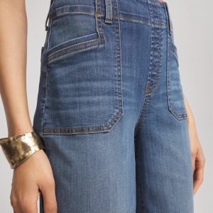 - Wide-leg Hollywood high-rise jean with faux pockets.