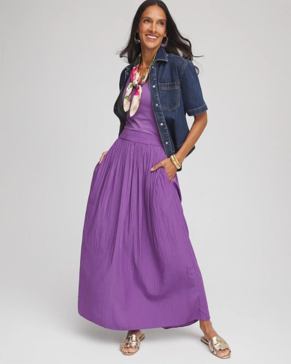 Style and ease combine to make our Pull-on Pleated Maxi Skirt the perfect spring pick. This debut is designed with silky Sea Island fabric that gives you flowy, versatile ways to style. Showcasing a stretch and recovery waistband with a flatter appearance at bottom of the elastic smocking, that hugs your body for a slimmer, more flattering fit.