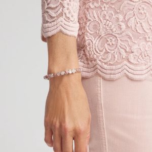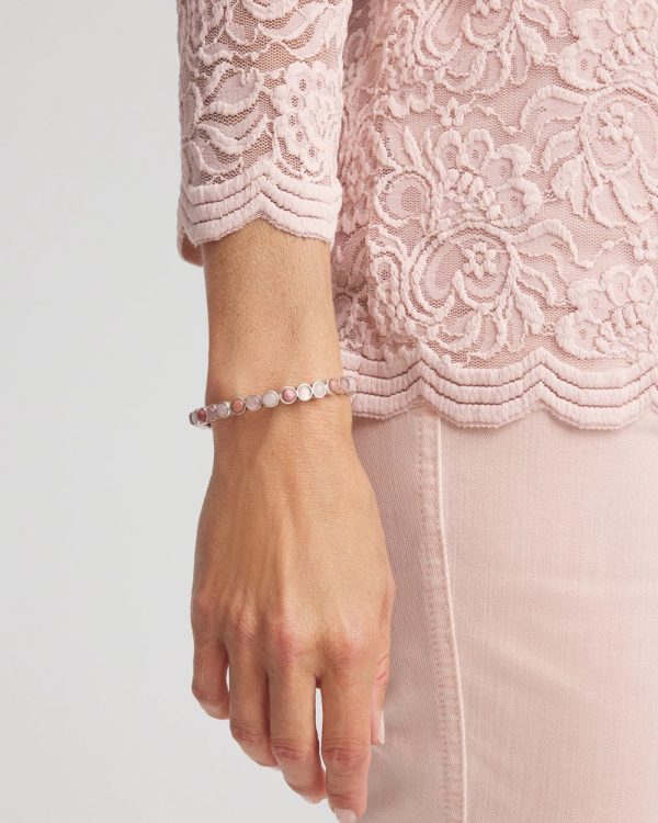 Pretty in pink, classic style imbued with inspiration—showcasing pink hues from quartz and rhodonite, this Silvertone Stretch Bracelet is perfect for pairing with your Chico’s Tennis Bracelets and other stretch bracelets in silver tones.
