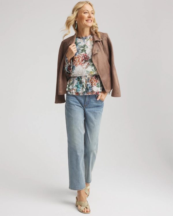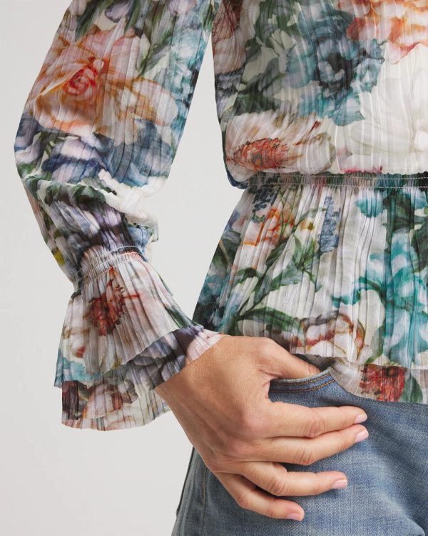 Understated elegant style helps define thisRose Print Crinkle Top. Showcasing a smocked waist, cuff, and mini mock neckline.