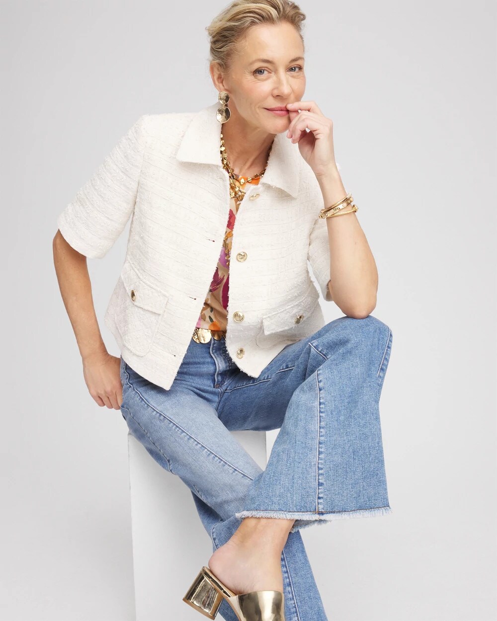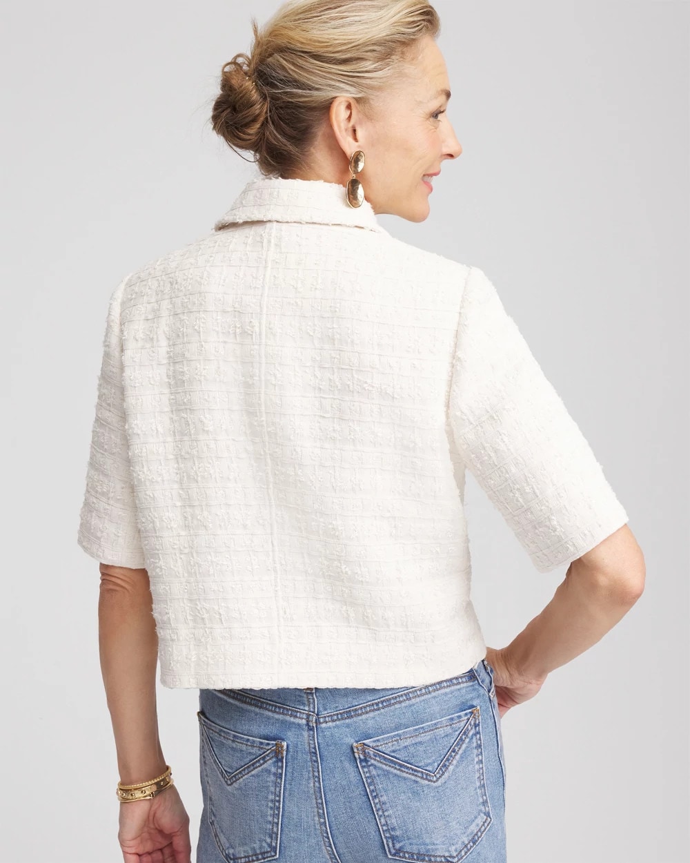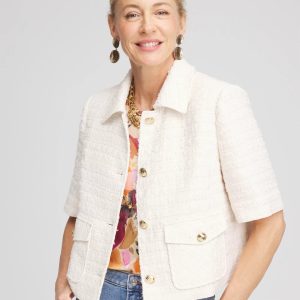 This luxuriously lined new Short Sleeved Tweed Lady Jacket comes in Chico’s customer-favorite silhouette. Featuring gorgeous gold-tone buttons and front pockets, this is your go-to layer to take your style to another level while staying warm during the chilly season.