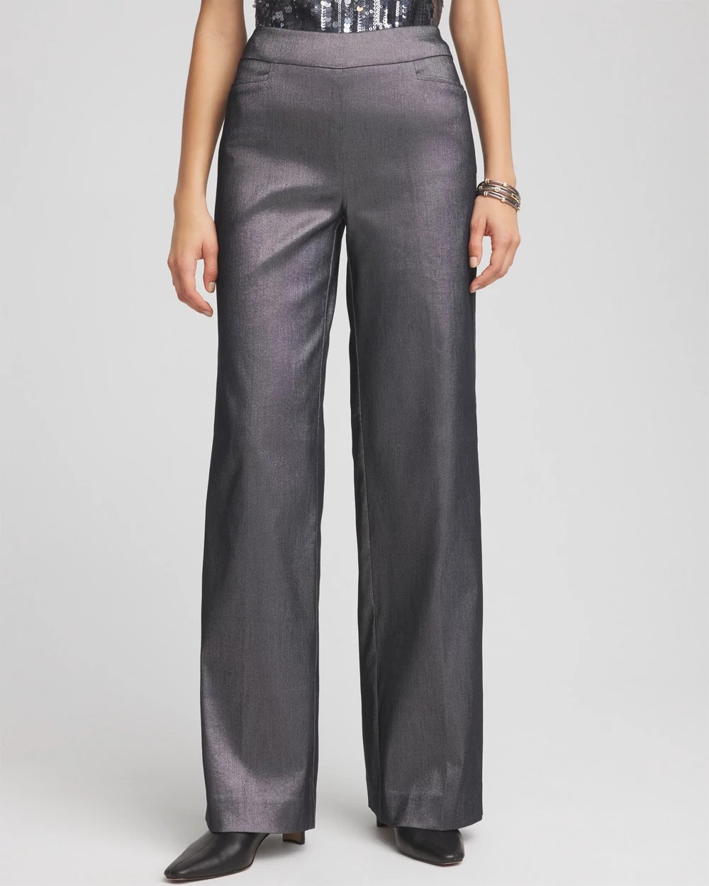 The new Silver Brigitte Wide Leg Pants have a So Slimming® inner panel that extends all the way around, slenderizing and sculpting your shape for a smooth look, and angled front pockets to enhance the effect. The rise sits just below the natural waist, offering comfort and style for everyday or party wear.