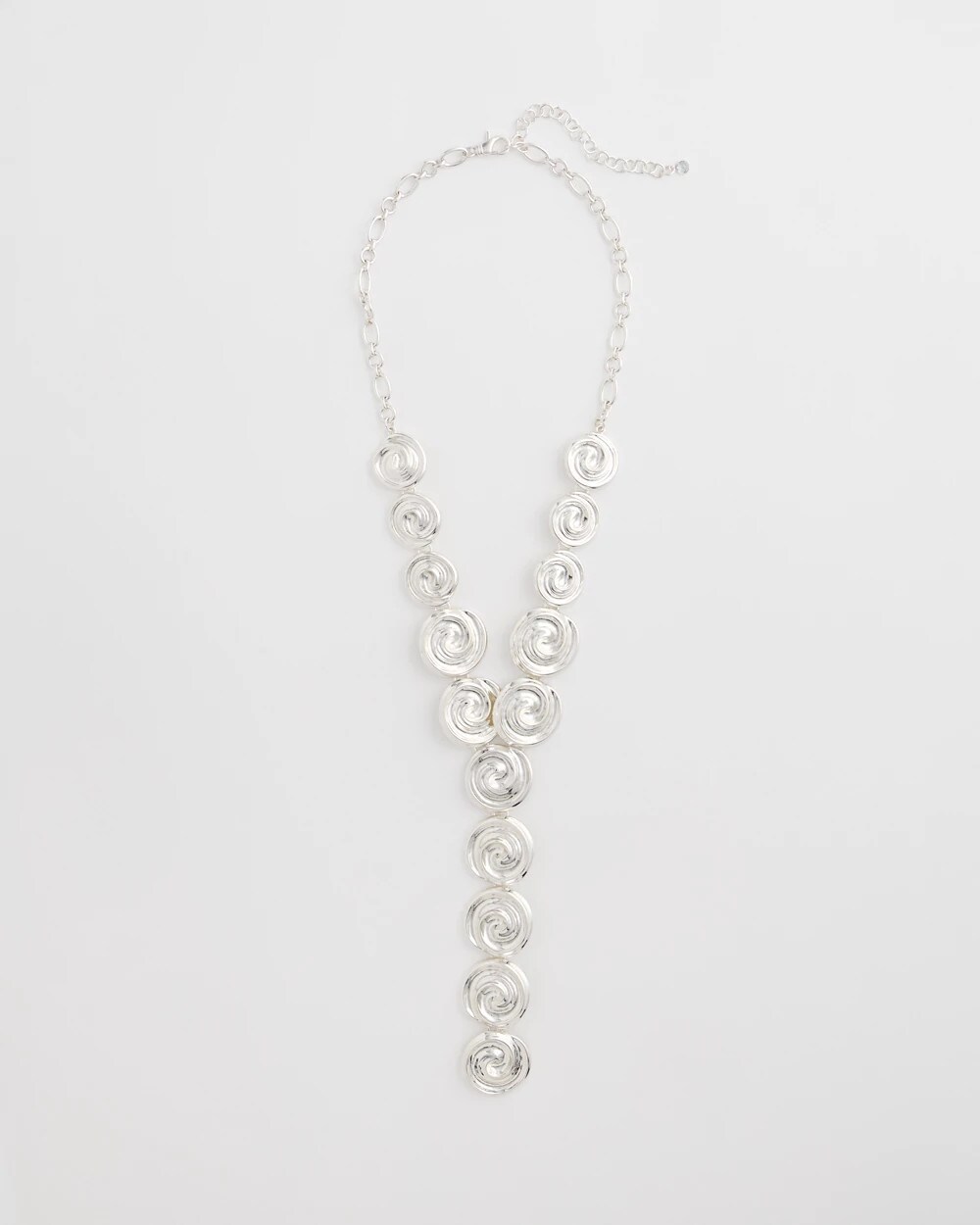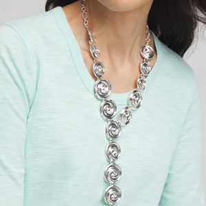 A new creation — streamlined set of shiny satin silver, crafted into a Y-drop necklace. This Chico’s summer adornment pairs perfectly with your dressy or casual v-neck outerwear. Mix and match with like pieces from Chico’s new Statement Silver Collection.