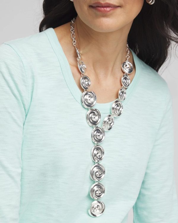 A new creation — streamlined set of shiny satin silver, crafted into a Y-drop necklace. This Chico’s summer adornment pairs perfectly with your dressy or casual v-neck outerwear. Mix and match with like pieces from Chico’s new Statement Silver Collection.