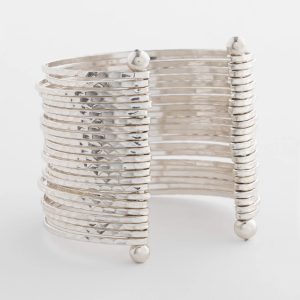 This sleek bracelet features a combined stack of silvertone slivers to create one large classic cuff. Whether dressing for vacation or casual daily wear, add Chico’s Sea Glass Silver Collection.