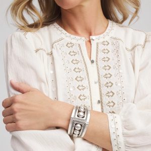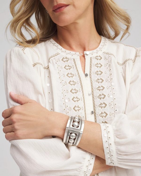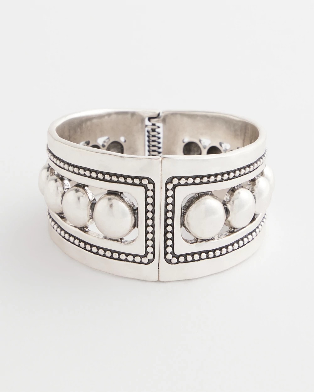 A stunning creation — shiny, silver hinge cuff bracelet.Inspired by ‘the Paris of the South’ Argentinian high-style. Matches perfectly with our Chico’s watch and other jewelry from our Regional Gems Collection.