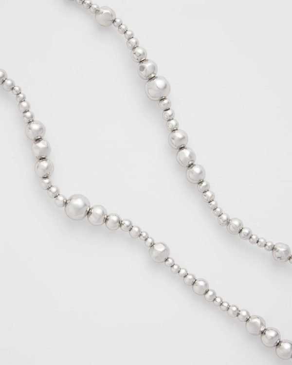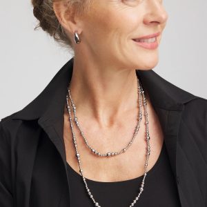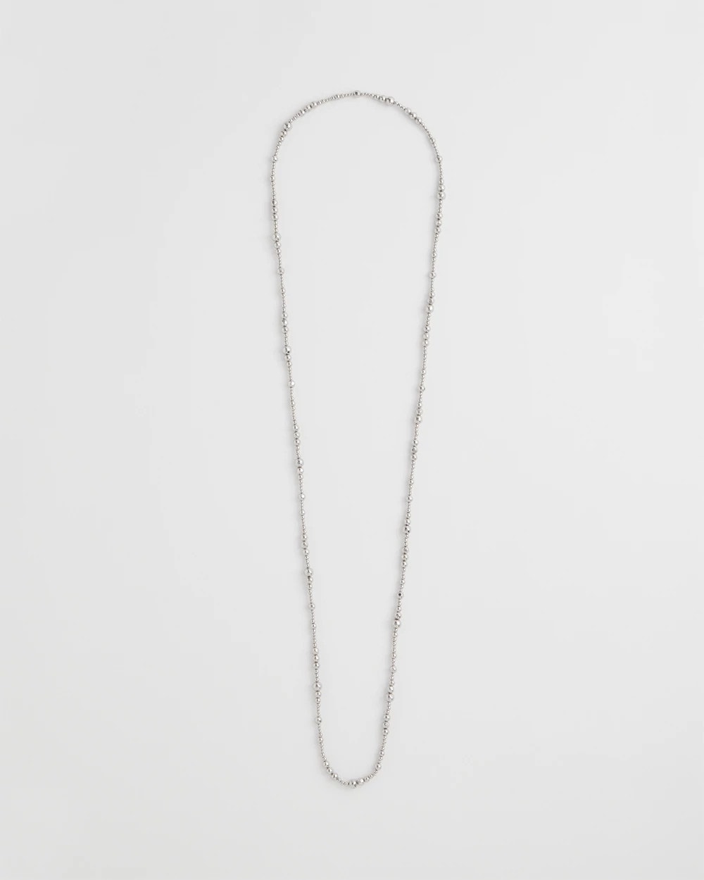 Shiny silvertone beads with a luxurious drape help define thisSilvertone Long Beaded Necklace. Perfect for pairing with Chico’s silver tone Tennis Necklaces or on its own as a single long strand or shorter stacked piece.