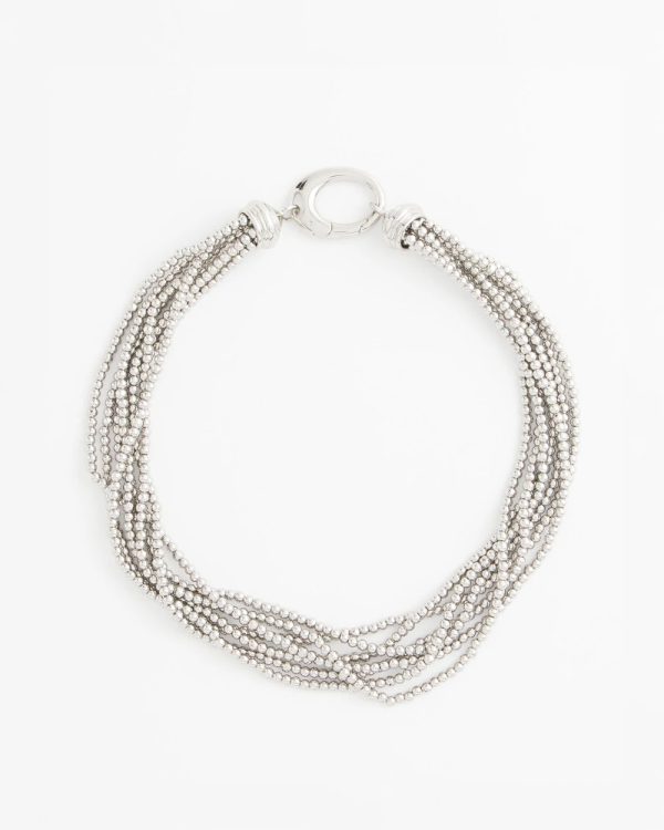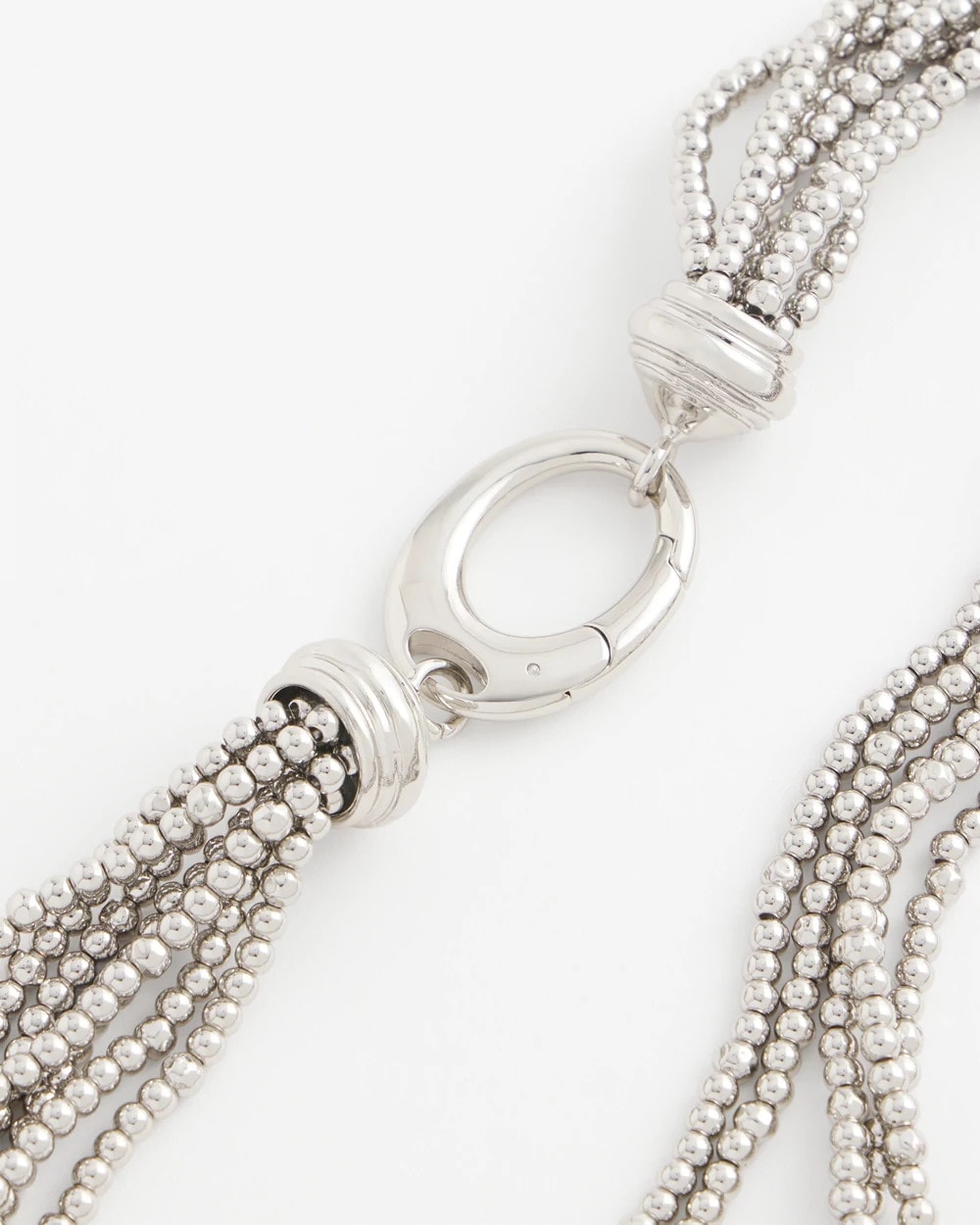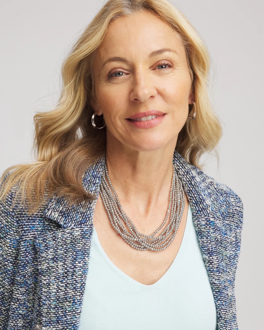 Classic beauty radiates from our Silvertone Multi-Strand Beaded Necklace. This contemporary, multi-strand short design instantly elevates your look. Pair with other silver tones and layering pieces from Chico’s Timeless Textures Collection or wear on its own.