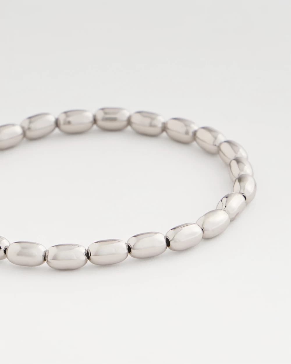 Feel-good, classic style imbued with inspiration—Silvertone Oval Beaded Stretch Bracelet, perfect for pairing with your Chico’s Tennis Bracelets and other stretch bracelets in silver tones.
