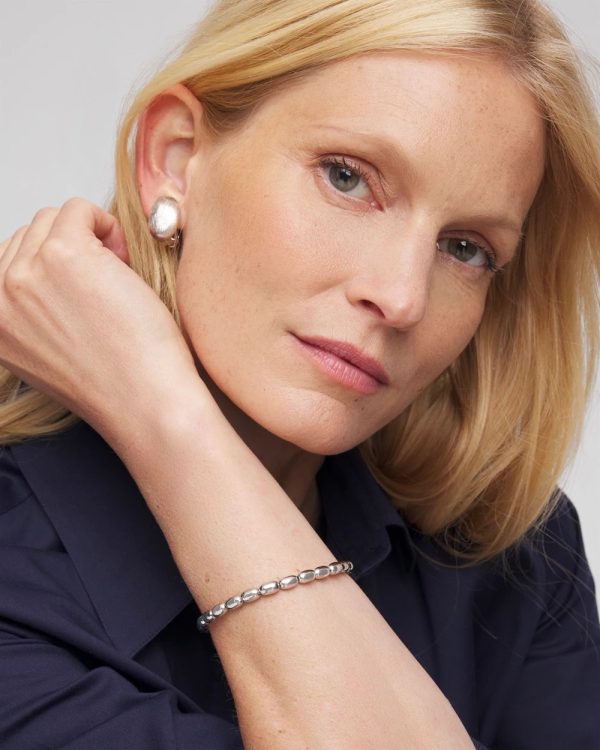 Feel-good, classic style imbued with inspiration—Silvertone Oval Beaded Stretch Bracelet, perfect for pairing with your Chico’s Tennis Bracelets and other stretch bracelets in silver tones.