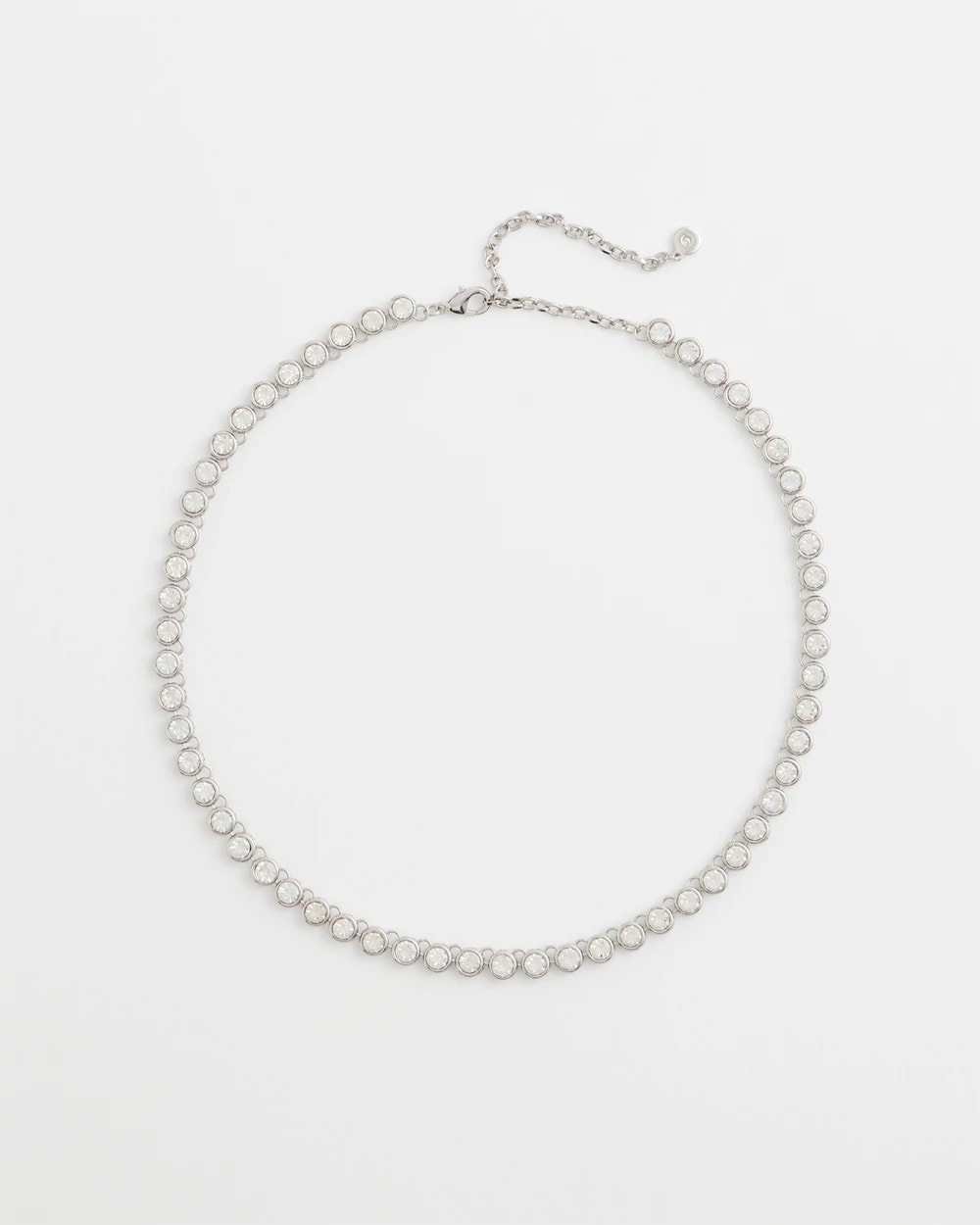 Timeless beauty radiates from our Silvertone Tennis Necklace. Wear with anything—from casual wear to special events. Pair with other silver tones from Chico’s jewelry collection or wear on its own.