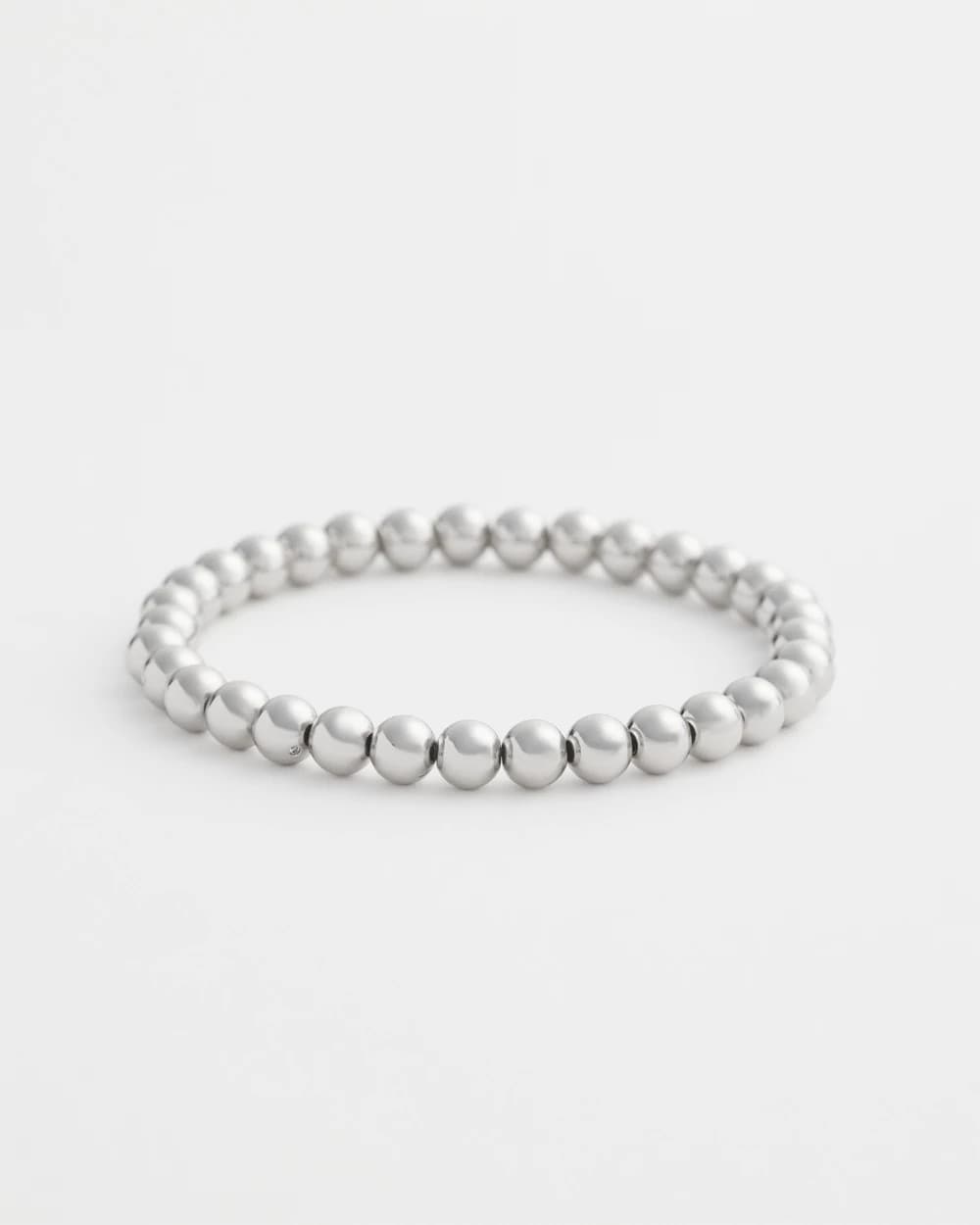 The Small Beaded Silver Tone Stretch Bracelet has easy-to-wear style. This design features small gold tone beads that add a touch of glamour. Great for stacking, this accessory is an easy, stylish addition to day or evening looks.