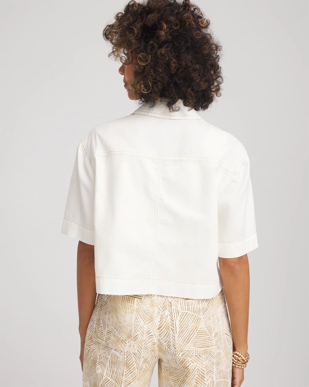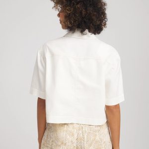 Always evolving, this new iteration of our short shacket is cut from a soft cotton fabric with a subtle stretch. Can be worn as a shirt or jacket, as it’s tailored with inspiration from classic shirting, suit jackets, and casual everyday jackets. Showcasing two front patch pockets and the ultimate in comfort and style. Featuring three horn-inspired buttons down the front; can be worn opened or closed with a microfiber tank or other tee underneath. Pair with alabaster and neutrals for a monochromatic look.