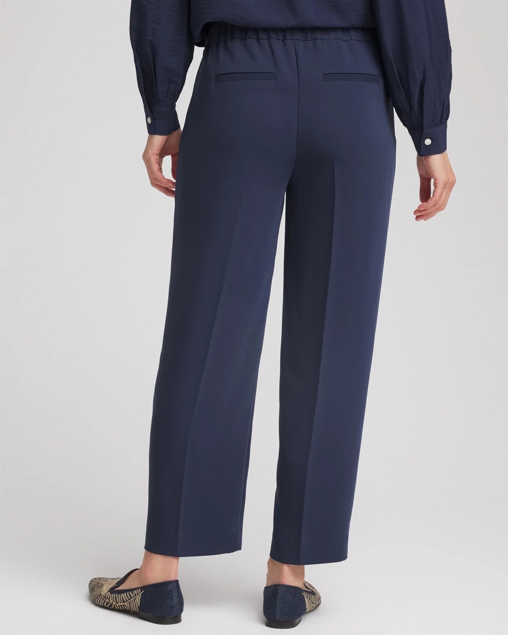 Discover the perfect balance between comfort and sophistication with our Stretch Crepe Tapered Ankle Pants. Cut from a soft-stretch crepe fabric. Featuring front pockets, back welt pockets, trouser seams, ready-to-wear pull-on waistband, and fly front details without the zipper.