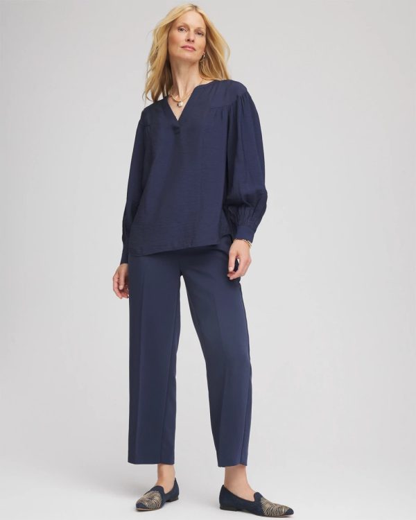 Discover the perfect balance between comfort and sophistication with our Stretch Crepe Tapered Ankle Pants. Cut from a soft-stretch crepe fabric. Featuring front pockets, back welt pockets, trouser seams, ready-to-wear pull-on waistband, and fly front details without the zipper.