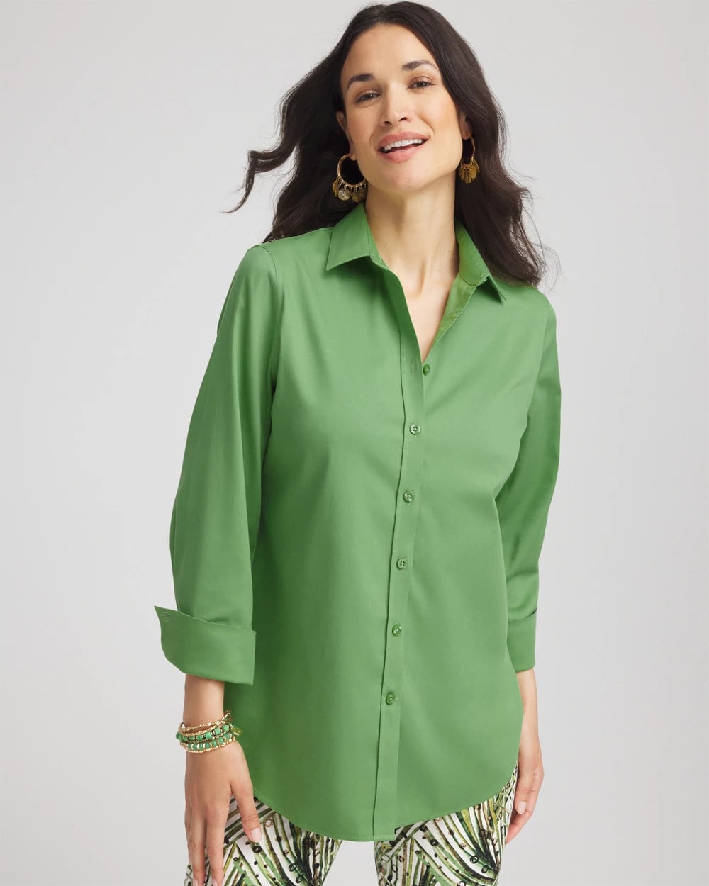 - Classic-fit 3/4 sleeve button-down.
