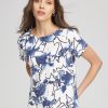 - Relaxed-fit; accent buttons on placket, 3/4 sleeves.