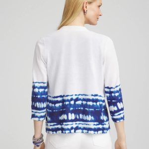 This Tie-Dye Summer Romance Short Cardigan is the lightweight top layer you need for the season. Featuring a subtle ribbed detail on the cuffs and hem, this 3/4 sleeve open-front cardi is made from breathable cotton-blend fabric that is the perfect weight for the summer months. Showcasing a tie-dye hemline and cuff against a white backdrop. Use this topper as the final accent over your jeans and shorts combo.