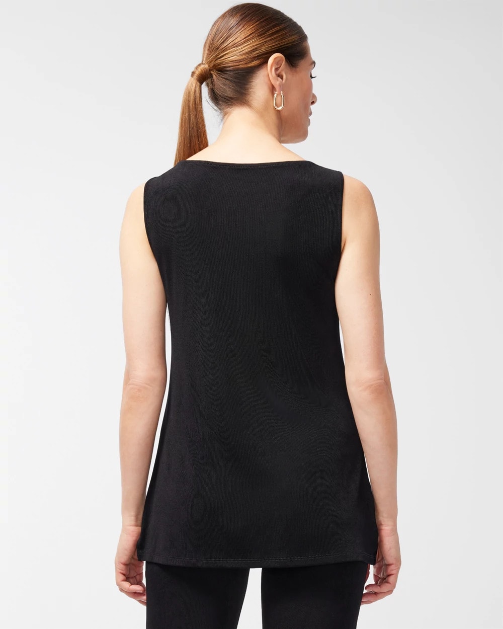 Stay cool and comfortable on your journey in Chico’s Travelers™ Classic Side-Slit Tank. Once you arrive at your destination, there’s no need to change since this tank is made with breathable, wrinkle-resistant fabric. Create an easy outfit when you pair this bateauneck tank with Chico’s matching Travelers™ No Tummy pants and classic cardigan.