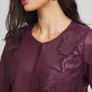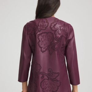 Floral tonal embroidery, laser cut details, and a hook and eye closure help define thisTravelers™ Collection Artisinal Cardigan. Pair with matching ‘Blackened Burgundy’ pieces.