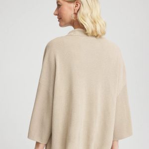 An airy high-shine knit brings instant glamour to this kimono-inspired cardigan. Designed with an array of thoughtful elements, including glistening metallic threads, ribbed placket, and rounded collar. For added luxury, pair this open-front cardigan with its custom-made to match Travelers™ Collection Knit Dress—two styles with endless possibilities for ways to wear.