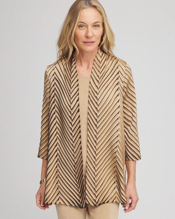 Our Travelers™ Collection Pleated Jacket has one-of-a-kind style, and we’ve brought it back in a stunning Cafe Aroma color. The cross dye fabric adds dynamic dimension to this pleated design. Wear this top layer over our Travelers™ tops and pants for a comfortable and stylish approach to vacation wear.