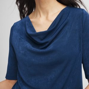 - Classic-fit, elbow-sleeved, cowlneck top.