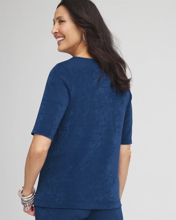 - Classic-fit, elbow-sleeved, cowlneck top.