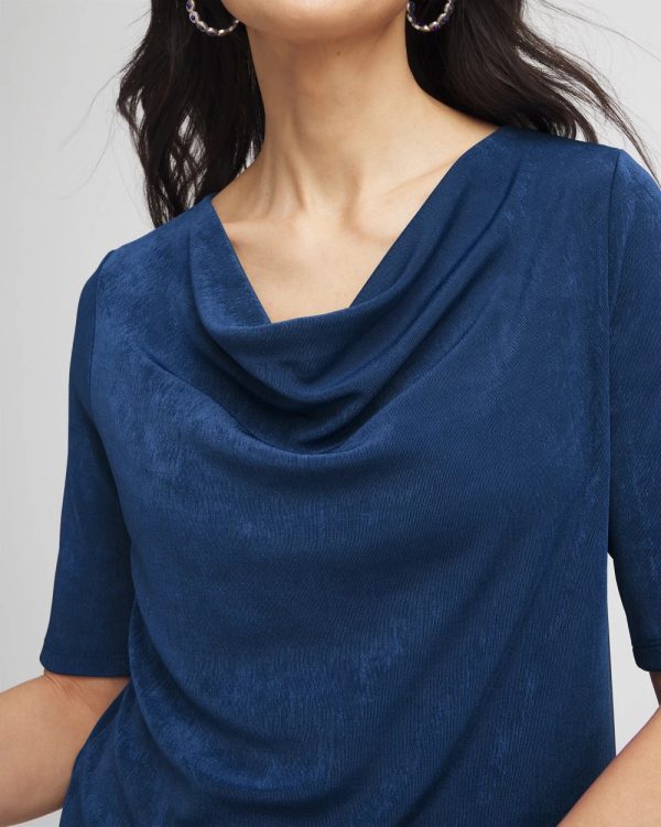 The Travelers™ Cowlneck Top has a classic vacation-ready look and feel. Made with our travel-friendly, wrinkle-resistant, and sustainable fabric, this top features a flattering cowl neckline with a flawless drape. Wear it with our Travelers™ jackets and skirts for a look that stays stylish, no matter how long it stays in your suitcase.