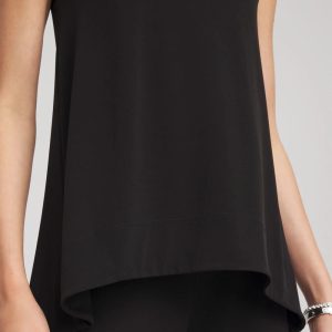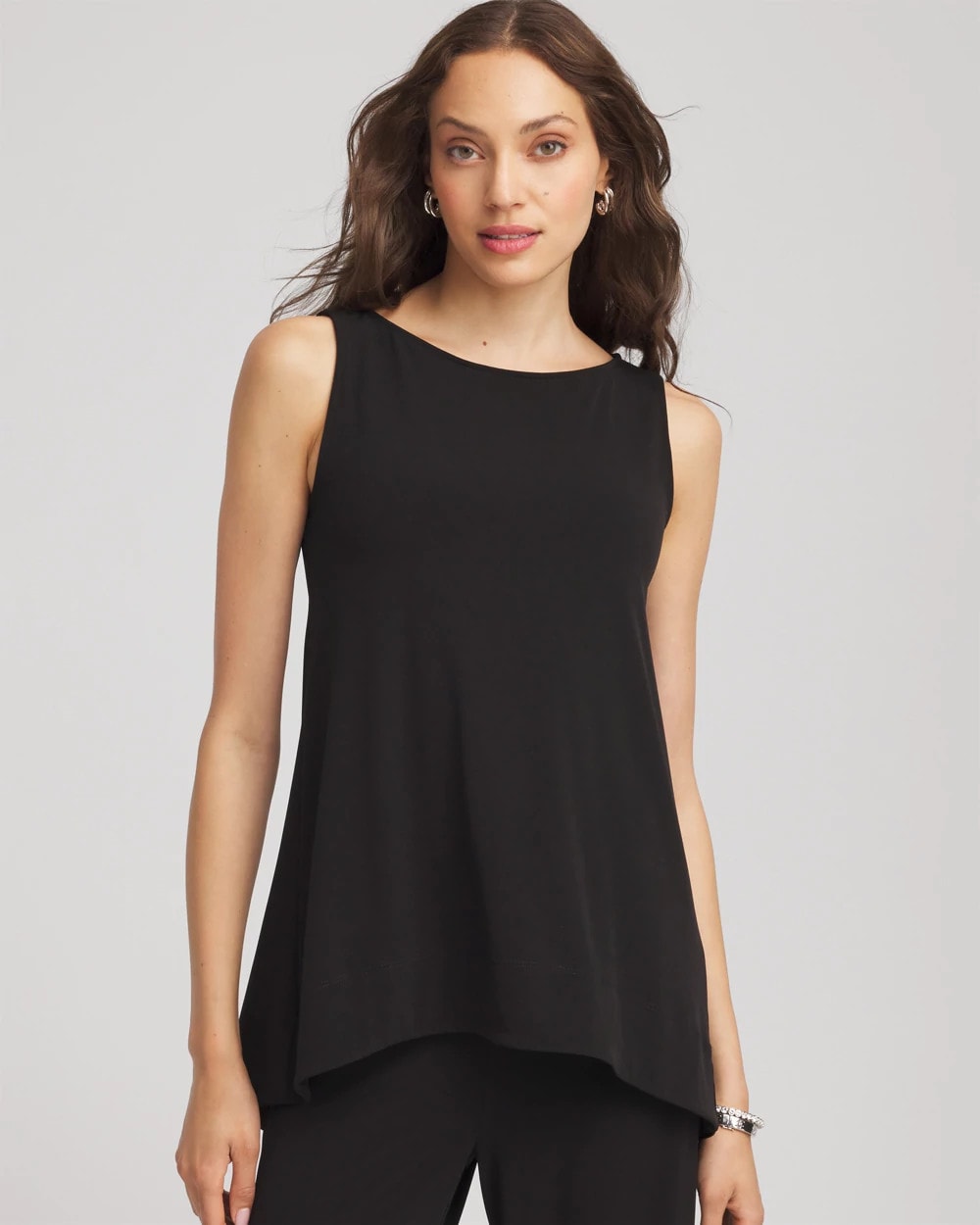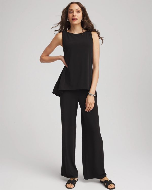 Travelers™ new knit pullover top—showcasing a high-low hemline, for a unique asymmetrical silhouette that offers more coverage in the back. Sleeveless, with a bateau neckline, and cut fromsoft to the touch, stretch-knit. The ideal travel garment—wrinkle-resistant, perfect for packing, and for long trips (or long days). This brand new style pairs perfectly with our Travelers™ wide-leg pant, featuring a wide elasticized waistband and high-rise pants.