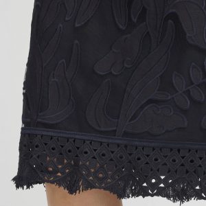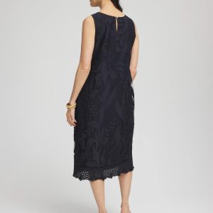 This luxurious new lined shift dress is elevated with embroidered appliqué on mesh. Loose-fitting to flatter all body types with comfort and ease, further realized with a fringe hemline. Custom-colored to match our wrinkle-free Travelers™ Collection. Woven jacquard fabric, this piece is a nod to Chico’s commitment to the finer details.