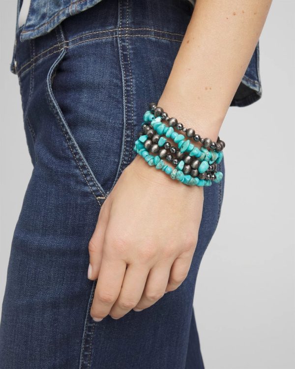 The Stretch Set of Five Beaded Bracelets has your all-in-one style solution. This set includes five stretch bracelets that can be stacked or worn separately. Showcasing genuine turquoise stone and rich metals. Pair with pieces from Chico’s Regional Gems Turquoise Collection.