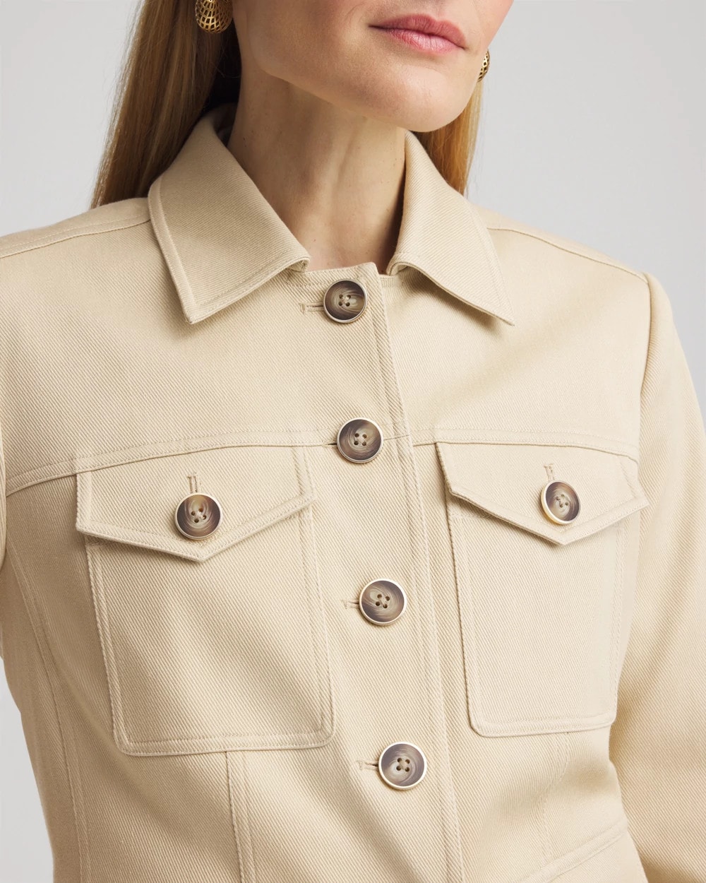 Add this new stylish — Chico’s Twill Safari Jacket to your 2025 wardrobe. Featuring long sleeves and four front pockets, this is your go-to layer to take your style to another level while staying warm during the chilly season.