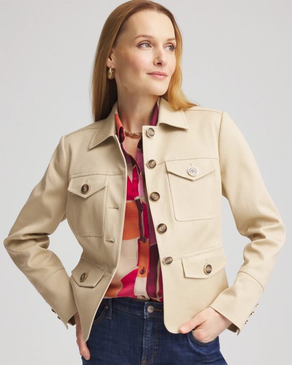 Add this new stylish — Chico’s Twill Safari Jacket to your 2025 wardrobe. Featuring long sleeves and four front pockets, this is your go-to layer to take your style to another level while staying warm during the chilly season.