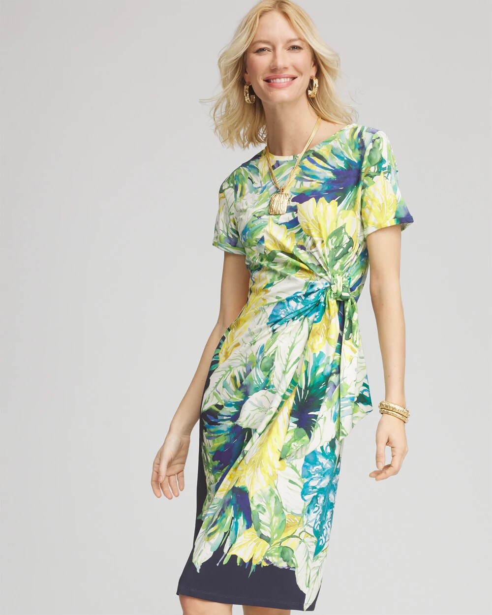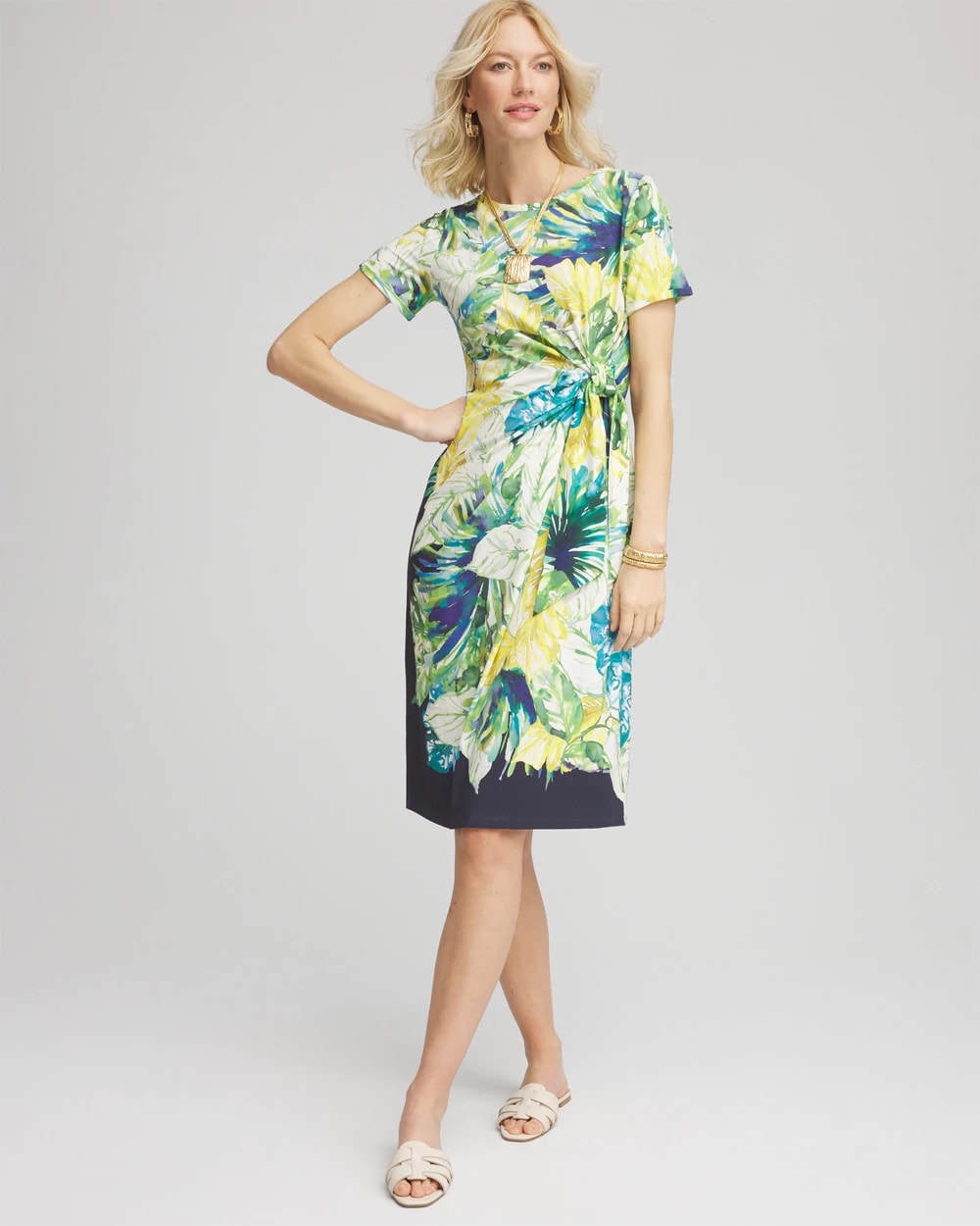 Add this soft and sophisticated style to your 2025 dress collection; Chico’s new elevated t-shirt style Twist-Front Knit Dress. Showcasing an eye-catching twist-front accent and tie detail as the focal point. Gently fitted drape crafted with lyocell-cotton stretch for a soft feel and flow. Dolman rolled-cuff sleeves, and jewel neckline.