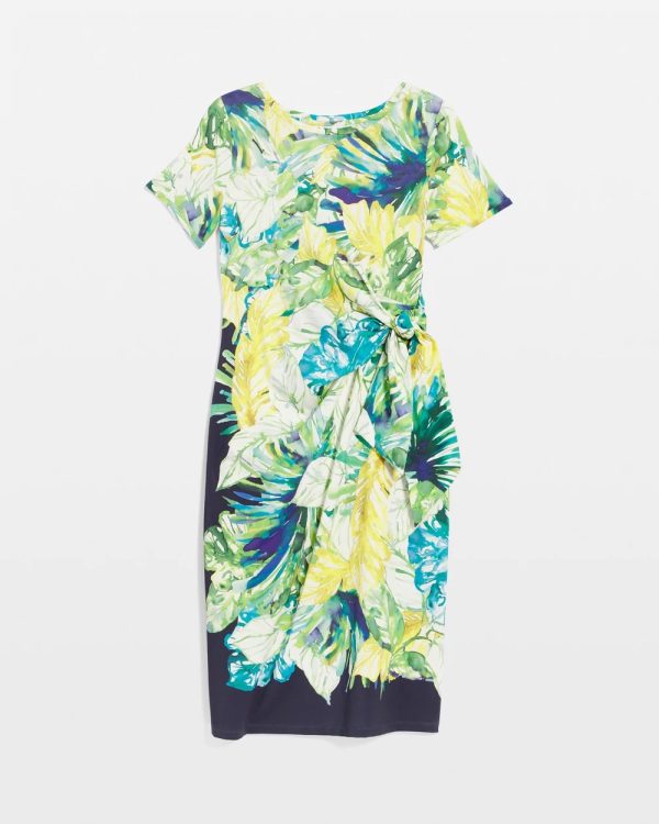 Add this soft and sophisticated style to your 2025 dress collection; Chico’s new elevated t-shirt style Twist-Front Knit Dress. Showcasing an eye-catching twist-front accent and tie detail as the focal point. Gently fitted drape crafted with lyocell-cotton stretch for a soft feel and flow. Dolman rolled-cuff sleeves, and jewel neckline.