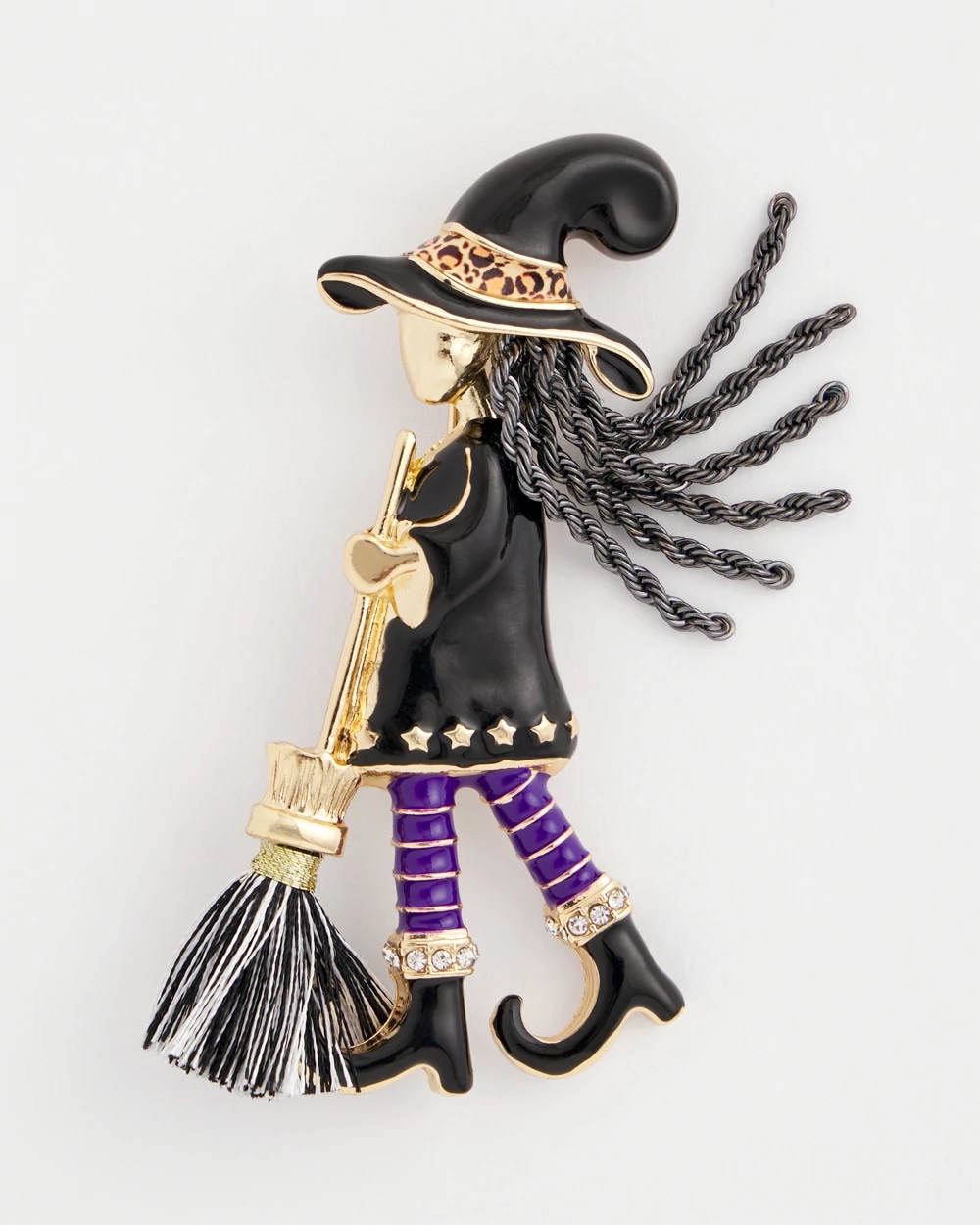 Something witchy goes this way—embody the spooky season in this adorably chic Witch Brooch. Pin her to your clothing or bags for an instant dash of fun to your fashion sense.